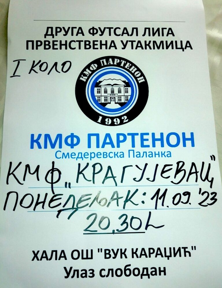 • ДРУГА ФУТСАЛ ЛИГА СРБИЈЕ: ПАРТЕНОН СТАРТУЈЕ У ПОНЕДЕЉАK, УБЕДЉИВИ СМЕДЕРЕВЦИ!