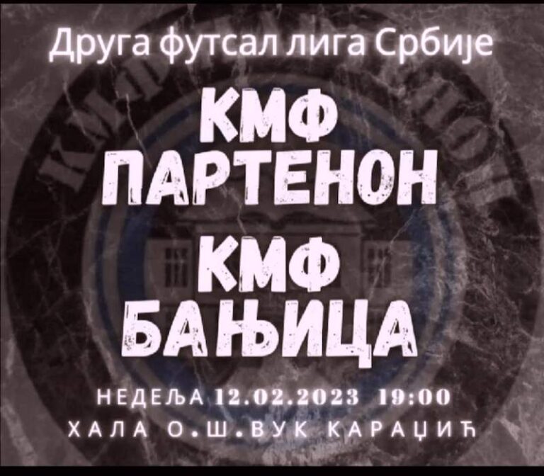 • ПАРТЕНОН У ОКВИРУ 16. КОЛА ДРУГЕ ФУТСАЛ ЛИГЕ ДОЧЕКУЈЕ ЕКИПУ БАЊИЦЕ
