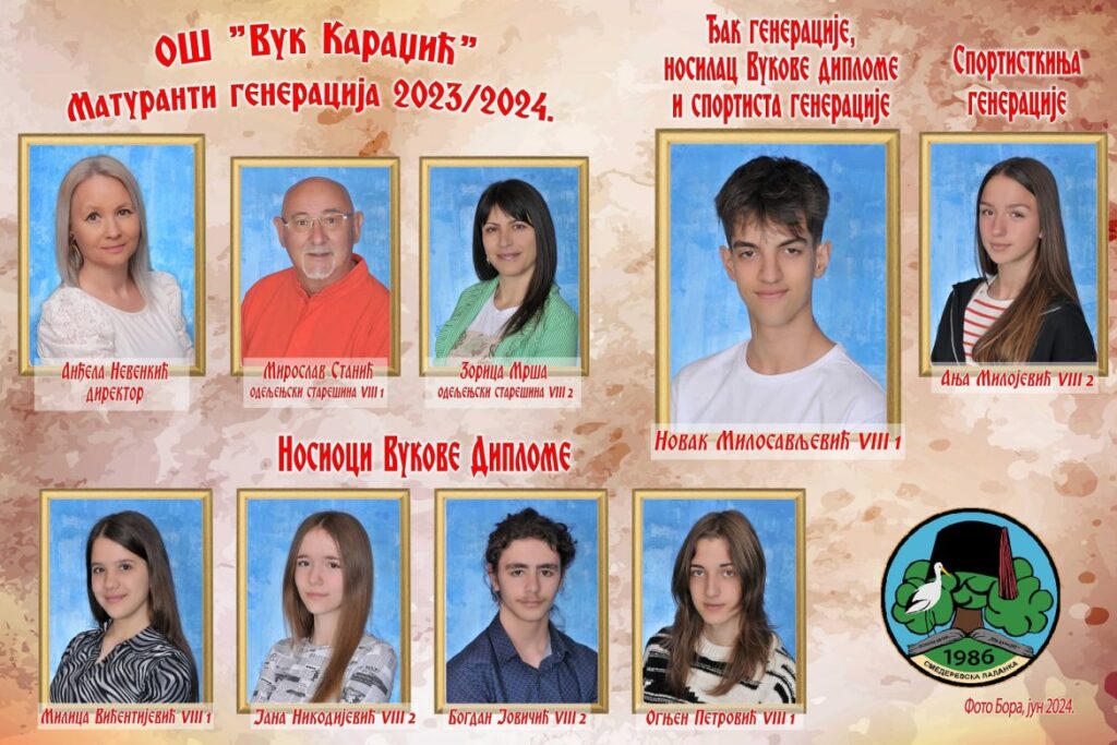 ОШ „Вук Караџић“ је 27. јуна организовала свечану доделу сведочанстава и награда за ученике осмог разреда. Генерација ученика 2009/10. годиште…