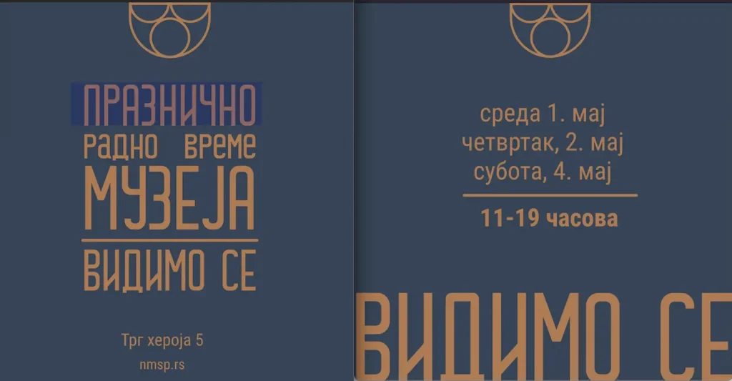 Народни музеј у Смедеревској Паланци обавештава све заинтересоване посетиоце да ће у среду 1. маја, четвртак 2. маја и у…