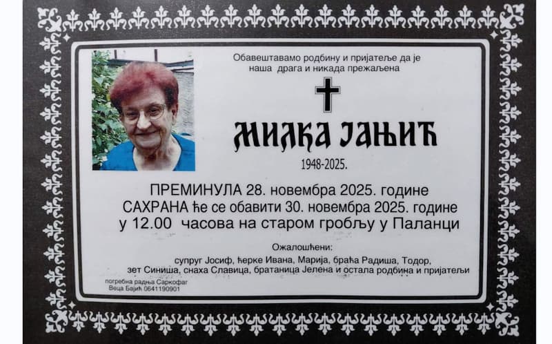 ОПШТИНА ЧИТУЉА by Паланка данас 29/11/2025 written by Паланка данас 29/11/2025 6 Читуља 0 comments 0 FacebookTwitterPinterestLinkedinTumblrVKOdnoklassnikiRedditStumbleuponWhatsappTelegramLINEPocketSkypeEmail Паланка данас previous post ДЕЦЕМБАРСКА ПЕНЗИЈА СТИЖЕ СА ПОПРИЛИЧНИМ УВЕЋАЊЕМ, ЕВО И КОЛИКО ЋЕ ИЗНОСИТИ next post ПУ „Чика Јова Змај” Смедеревска Паланка: Презентација тима за самовредновање у вртићу „Ташмајдан” You may also like ЧИТУЉА 29/11/2025 ПОРОДИЦЕ У ОПШТИНИ СМЕДЕРЕВСКА ПАЛАНКА ДОБИЛЕ ПОМОЋ У... 28/11/2025 ЧИТУЉА 27/11/2025 (ВИДЕО) Хуманитарни концерт за Филипа Новаковића: Прикупљено 146.000... 26/11/2025 ЗА ПЕТАК ЗАКАЗАНА СЕДНИЦА СО СМЕДЕРЕВСКА ПАЛАНКА –... 26/11/2025 Успех ученица ОШ „Ђорђе Јовановић“ Селевaц на литерарном... 25/11/2025 Библиотекари из Смедеревске Паланке на стручном усавршавању у... 25/11/2025 ПАЛАНАЧКИ ЛАВИЋИ СЕ ПЛАСИРАЛИ У СУПЕРЛИГУ РС ЦЕНТРАЛНЕ... 23/11/2025 „ШЕЋЕРИЋИ“ ИЗ ВРТИЋА „ТАШМАЈДАН“ У ПОСЕТИ ГОША-ФОМ: ЛЕКЦИЈА... 20/11/2025 Хуманитарни концерт за Филипа Новаковића у организацији Музичке... 19/11/2025 Leave a Comment Cancel Reply Save my name, email, and website in this browser for the next time I comment.