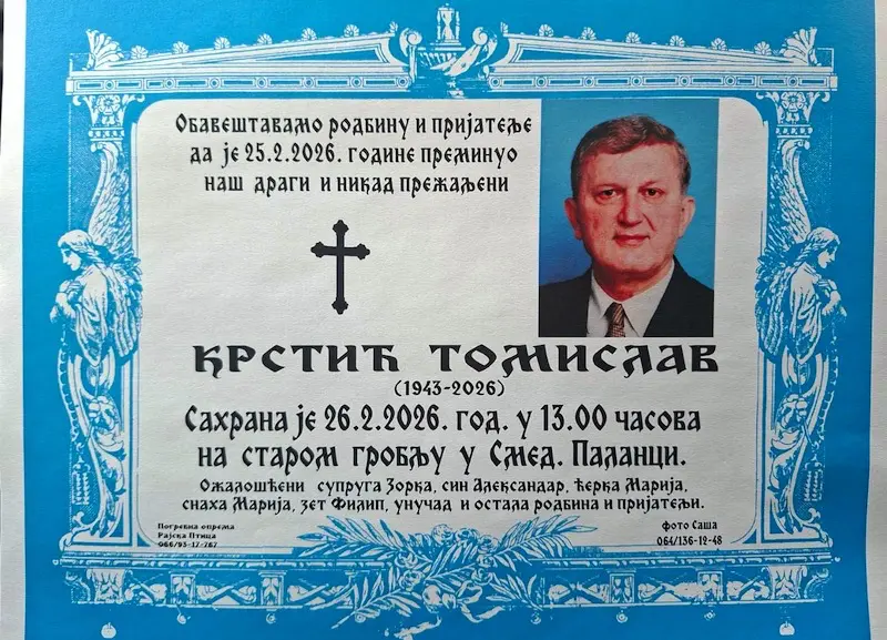 Фотографију читуље можете послати на мејл palankadanas@gmail.com или на вибер број 064 115 33 17
