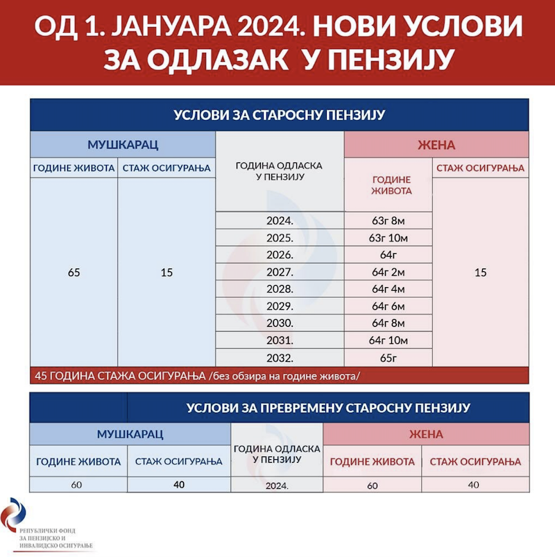 ОД 1. ЈАНУАРА 2024. НОВИ УСЛОВИ ЗА ОДЛАЗАК У ПЕНЗИЈУ