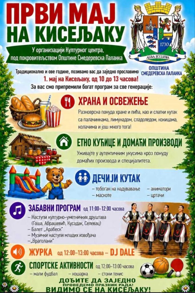 ​Традиционално и ове године, позивамо вас да заједно прославимо Међународни празник рада на Кисељаку! Припремили смо богат програм за све генерације.
