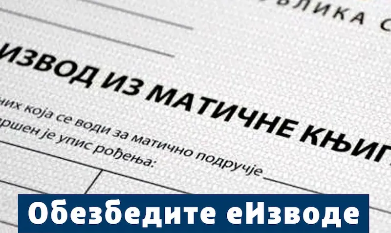 Уз услугу еИзвод можете брзо, једноставно и без чекања добити извод из матичне књиге рођених, извод из матичне књиге венчаних и извод из матичне књиге умрлих.