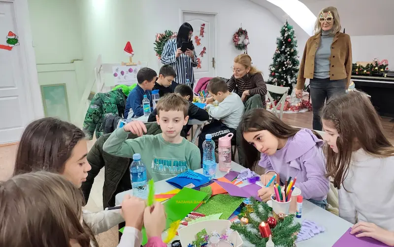 Уз маштовито украшавање, блиставе детаље и веселу атмосферу, малишани су направили новогодишње честитке које ће поклонити својим најдражима, преносећи им лепе жеље и празнични дух.