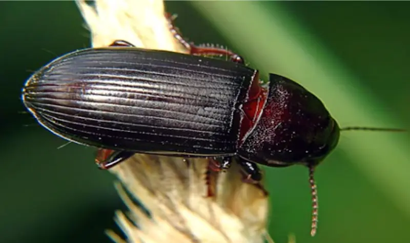 Житни бауљар представља једну од врло значајних штеточина, познат је по томе да напада стрна жита као што су пшеница, јечам, раж, овас и тритикале. Одрасли инсект је црне боје са леђне стране и тамно смеђе са трбушне, величине око 15 мм.